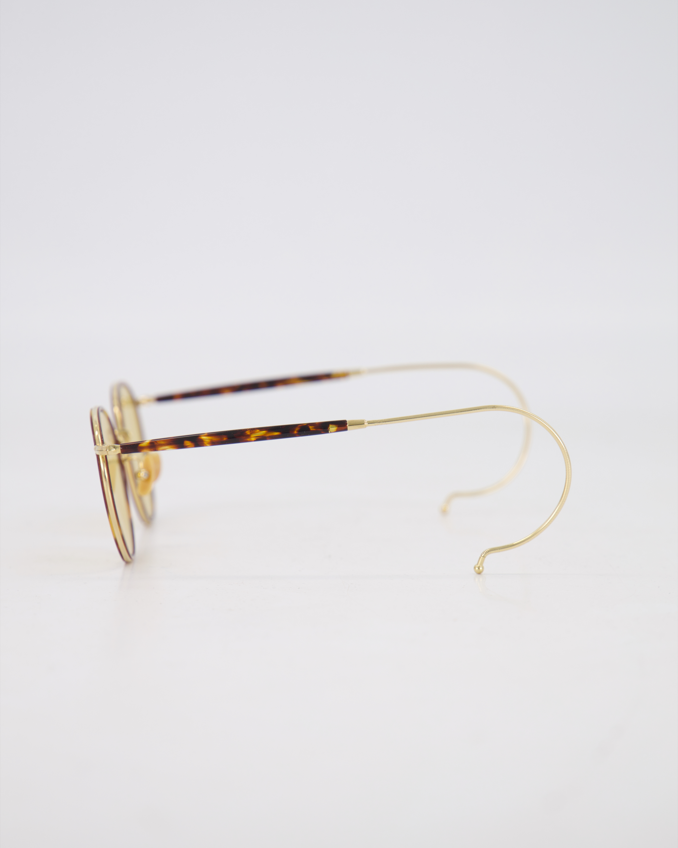 Pantos Gold sunglasses, in hypoallergenic, unalterable titanium, inspired by the 1900-1930s, size 47-24 nosepiece, acetate-coated hook temples, acetate-coated inner face in Chantilly cherry tortoiseshell style, fitted with Barberini mineral lenses, sold in a compact hard case.