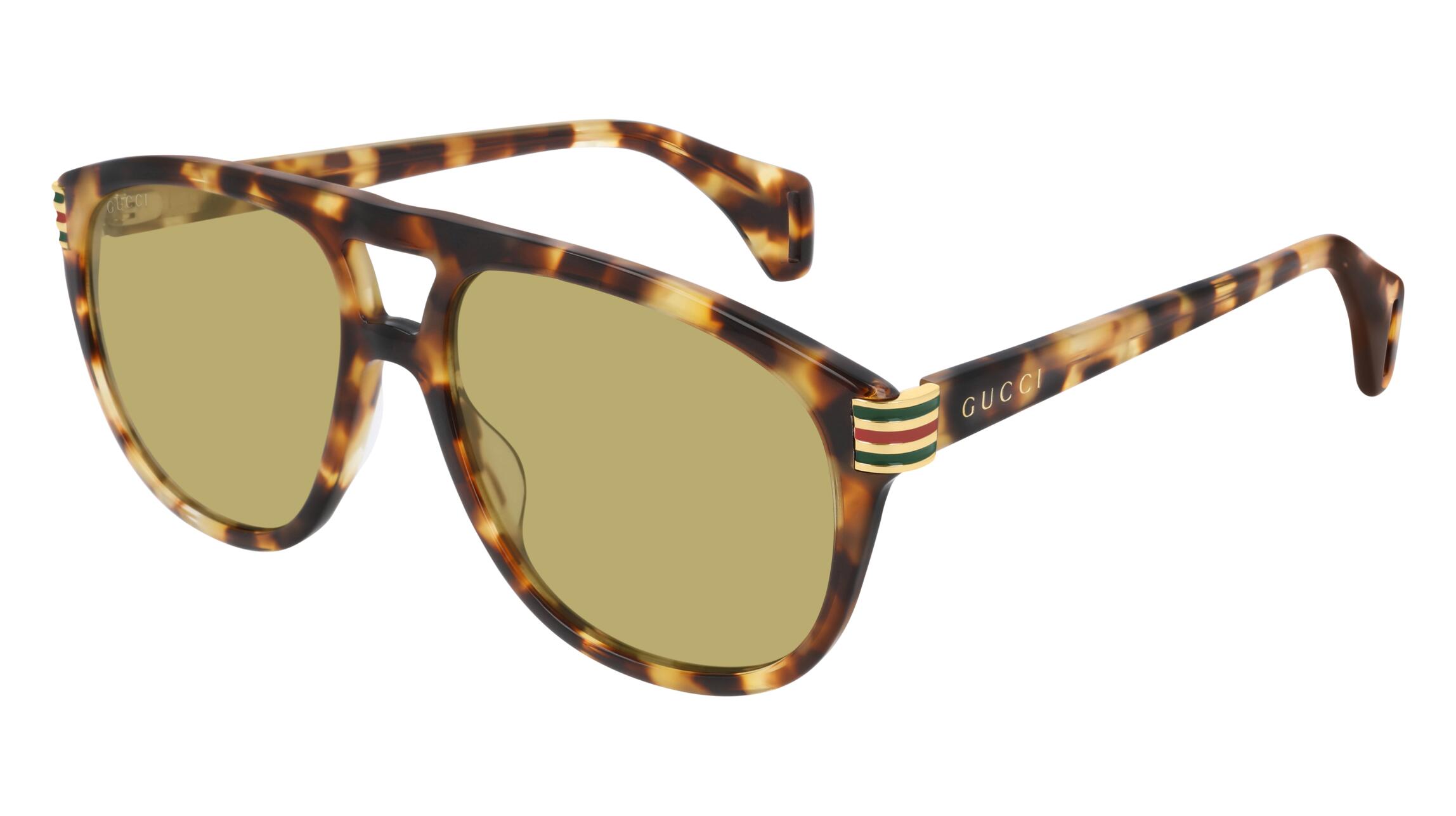 Gucci lettering logo on temples.